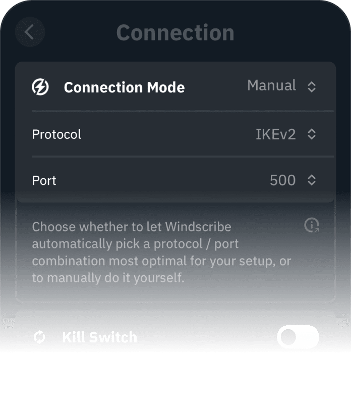 Windscribe offers 6 different protocols to choose from, along with over 20 different connection ports.