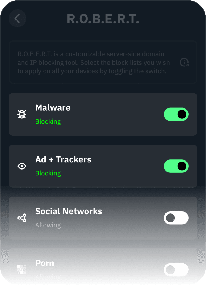 Select which block lists you wish to apply on all devices by toggling a single switch.